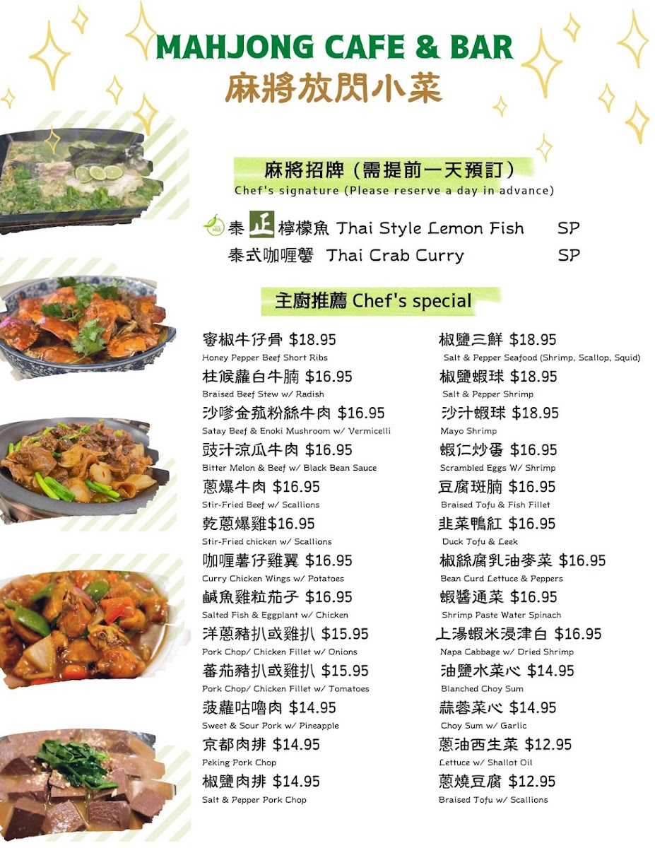 Tucked in the lively heart of Flushing, Mahjong Cafe & Bar 麻将茶餐厅&酒馆 Menu brings a fun blend of comfort dining and nightlife energy to 135-15 37th Ave. The menu rolls through classic Hong Kong café dishes and creative East-meets-West bites, each crafted to pair perfectly with their signature drinks. From silky milk teas and sizzling clay pots to crispy snacks made for sharing over a round of cocktails, every choice feels like an invitation to linger a little longer. The place captures the easy rhythm of a tea café by day and the playful pulse of a bar by night, making it just as fitting for casual meals as it is for late-night chatter. Whether you’re here to taste nostalgia or discover something new, there’s always something on the menu that hits the spot.